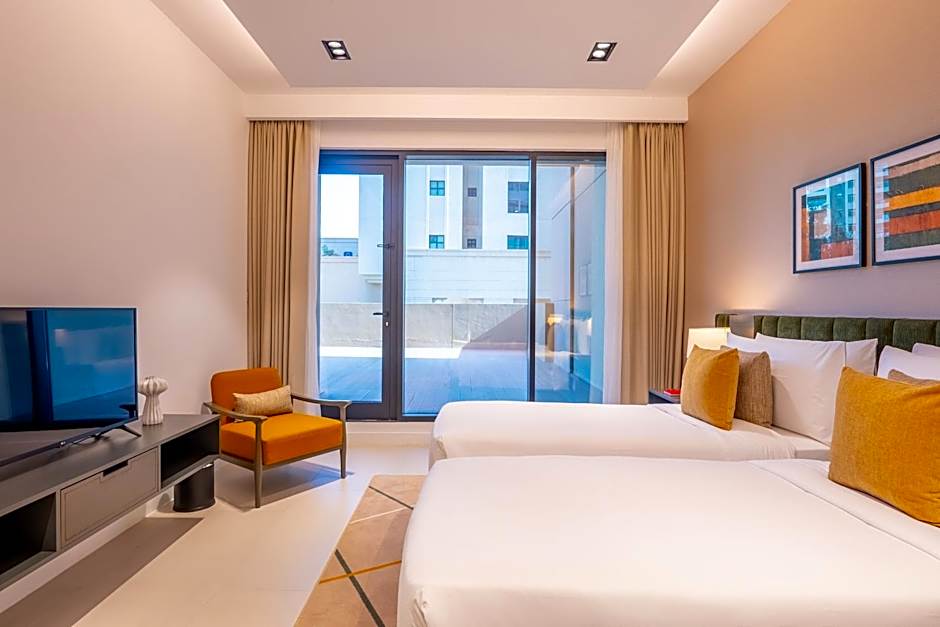 This spacious apartment consists of 1 living room, 2 separate bedrooms and 2 bathrooms with a shower and free toiletries. Meals can be prepared in the kitchen, which is equipped with a stovetop, a refrigerator, a dishwasher and kitchenware. The air-conditioned apartment provides a flat-screen TV with satellite channels, a washing machine, soundproof walls, a tea and coffee maker as well as city views. The unit offers 4 beds.